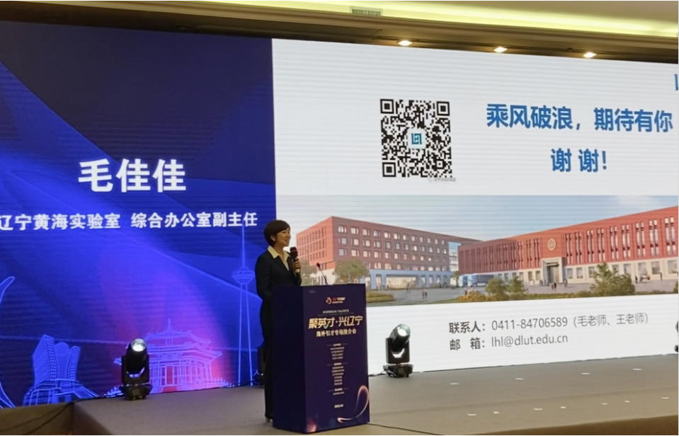 “聚英才 兴辽宁”海外引才专场推介会上,毛佳佳以《海纳百川 逐梦起航》为题,全面介绍了实验室概况、人才岗位需求和支持保障创新举措,代表实验室对全球科研人员发出诚挚加盟邀请。在对接洽谈环节,实验室主动邀请意向人才来连现场交流,让人才切身感受实验室“开放 协同 高效”的科研管理文化及求贤若渴的引才诚意。